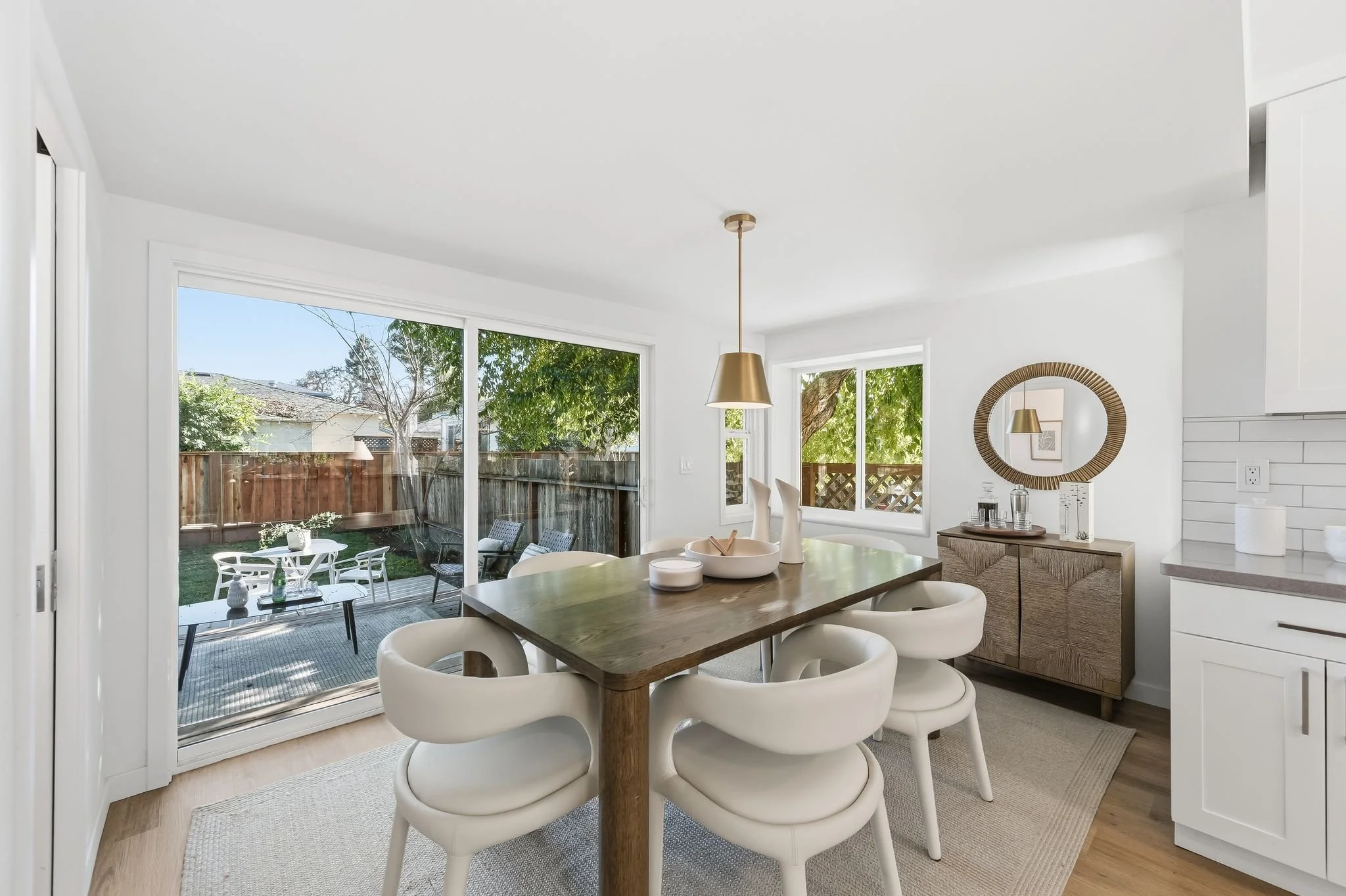 711 Roosevelt Avenue offers the rare combination of refined design, everyday comfort & future potential- all wrapped into a beautiful, turnkey home. The home features 2 spacious bedrooms & 1.5 beautifully updated baths, with the main bathroom designed as a true retreat. A tub wrapped in dramatic marble with a niche & bench and softened by light wood & rattan accents creates a natural, spa-like atmosphere. The open-concept living & dining areas flow effortlessly into a thoughtfully designed kitchen. The timeless kitchen anchors the home with white shaker cabinetry, natural stone countertops, classic subway tile, all-new stainless steel appliances & a sleek peninsula that naturally invites gathering. Air conditioning & heat provided by new mini-split ensures year-round comfort, while the seamless layout makes the home feel both polished & effortless. Indoor laundry closet for ease and convenience. Outdoors, a lovely, grassy yard with a sun-washed deck creates an ideal extension of the living space, with ample room for entertaining, relaxing, or ADU potential. Off-street parking adds everyday ease, & the homes proximity to shops, dining, and transit in downtown Redwood City makes this location as convenient as it is desirable.