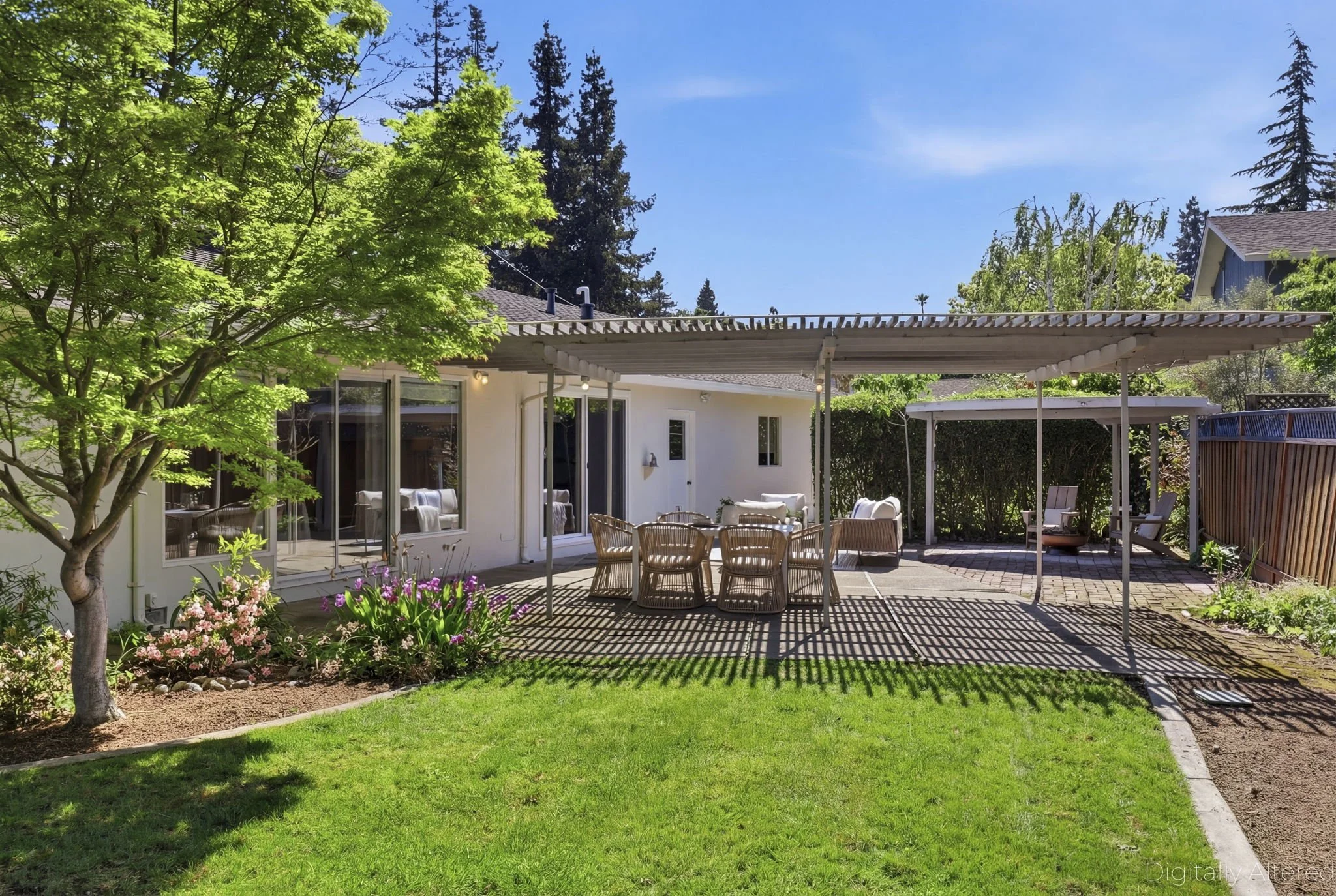 Tucked away down a private shared driveway, this charming Redwood City rancher blends mid-century character with comfort and space. Set on an expansive 12,606 sq ft lot, the property showcases beautifully curated, mature gardens designed by a master gardener creating a serene, park-like setting. Inside, the 3-bedroom, 2.5-bath home features tall ceilings that enhance the light and airy feel, along with a cozy pass through fireplace that separates the family room just off the kitchen, perfect for relaxed everyday living or entertaining. The thoughtful layout offers both openness and privacy in all the right places. Additional highlights include an oversized two-car garage with ample storage or workspace potential. With its unique setting, timeless style, and lush grounds, this home is a rare opportunity to enjoy both tranquility and convenience in Redwood City.