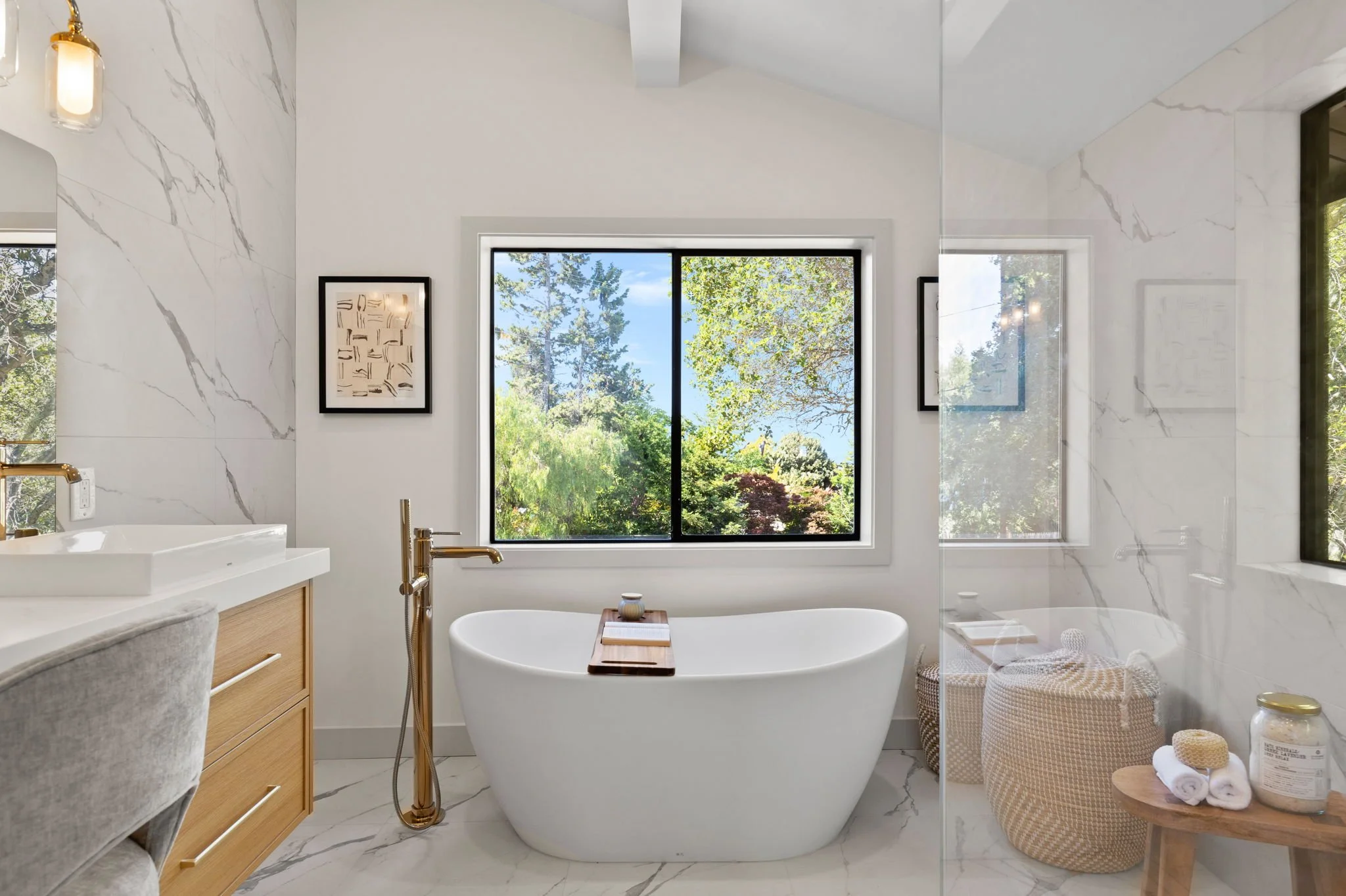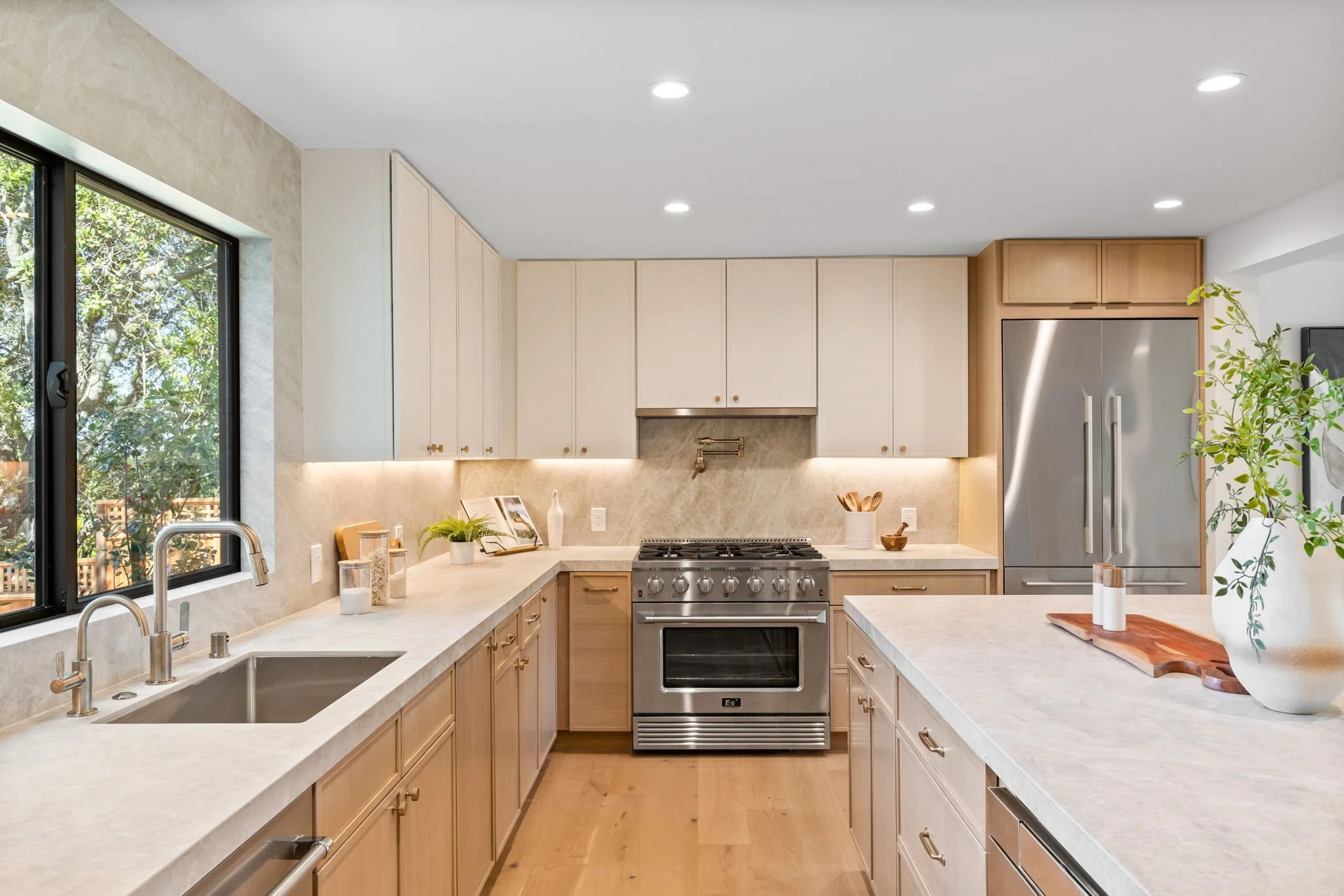 Set on over a third of an acre in the heart of Emerald Hills, this fully remodeled estate offers elevated living inside and out. With four spacious bedrooms and three and a half baths, including a luxurious secondary suite and an exceptional primary retreat, the home has been thoughtfully redesigned for both comfort and style. Vaulted ceilings, expansive sliders, a grand foyer, and wide-plank flooring lead you through airy interiors that flow seamlessly to a massive two-story deck, capturing peaceful canyon views. The chef’s kitchen is a showstopper—anchored by an expansive island, a full wall of pantry cabinetry, and high-end appliances including a pot filler and instant hot faucet for effortless cooking. The incredible primary retreat boasts soaring vaulted ceilings, a generous walk-in closet, spa-like bath with soaking tub, and a spacious bedroom that frames serene canyon views. A dedicated upstairs laundry room adds everyday convenience, while central AC ensures year-round comfort. Out back, a whimsical windmill and bonus detached 400+ square foot flex-space cottage open the door to endless possibilities—studio, office, gym, or main-level guest retreat. A wide driveway, extra large 2-car garage, and ample off-street parking round out this rare offering in one of the Peninsula’s most beloved communities.